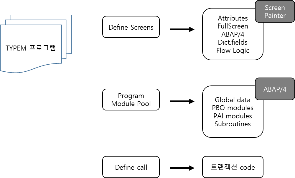 Screen์ ์ด์ฉํ์ฌ Flow Logic์ ๋ฐ๋ผ Business Flow๋ฅผ ์ฒ๋ฆฌํฉ๋๋ค.