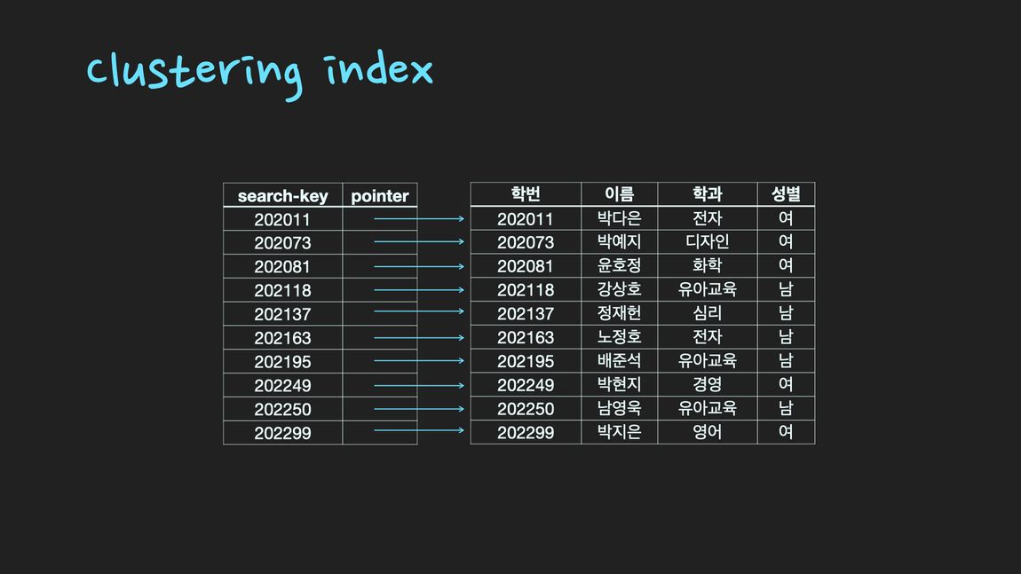 | ํด๋ฌ์คํฐํ ์ธ๋ฑ์ค (clustering index) |