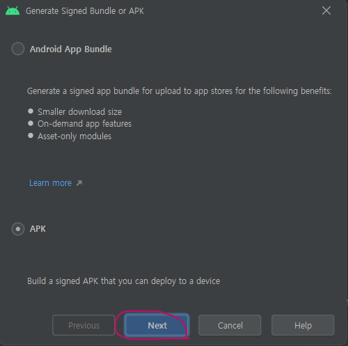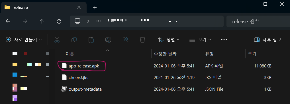 ๊ฒฝ๋ก๋ `C:\Users\User_ID\AndroidStudioProjects\Your App\app\release`