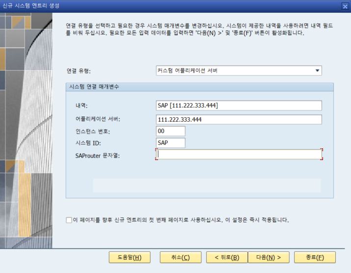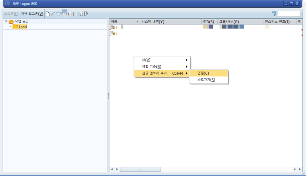 1. SAP ์คํ - ์ ๊ท ์ํธ๋ฆฌ ์ถ๊ฐ - ์ฐ๊ฒฐ