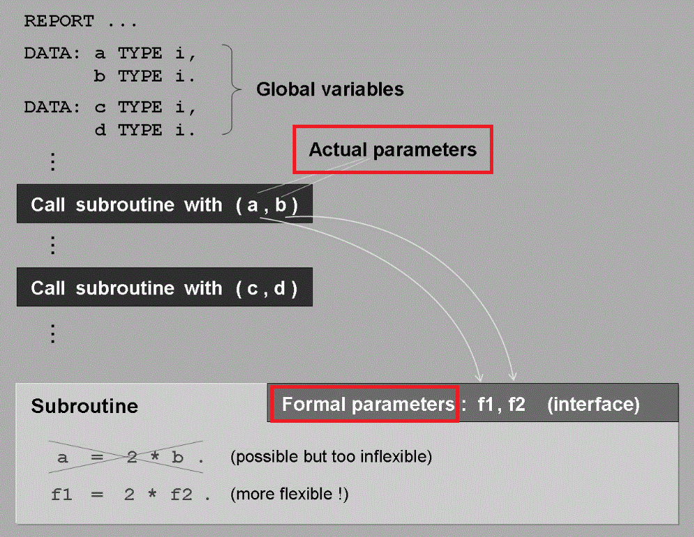 FORM calculate_sum USING num1 TYPE i num2 TYPE i.
