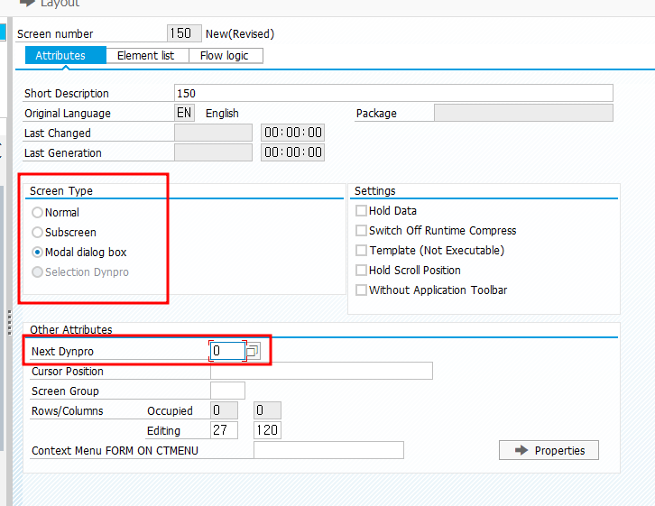 - Other Attributesμ Next Dynpro μ€μ μ μ€ν¬λ¦° κ°μ νλ¦(λ€λΉκ²μ΄μ )μ μ μνλ λ° μ¬μ©λ©λλ€. Next Dynproλ νμ¬ μ€ν¬λ¦°μμ μ’ λ£λ λ λ€μμ νΈμΆλ μ€ν¬λ¦°μ λ²νΈλ₯Ό μ§μ ν©λλ€. Next Dynproκ° 0μΌλ‘ μ€μ λ κ²½μ°, νμ¬ μ€ν¬λ¦°μμ λ€μ μ€ν¬λ¦°μ΄ νΈμΆλμ§ μμμ μλ―Έν©λλ€. μ¦, νμ¬ μ€ν¬λ¦°μ΄ μ’ λ£λλ©΄ μ΄μ μ€ν¬λ¦°μΌλ‘ λμκ°κ±°λ νμ¬ νΈλμμ μ μ’ λ£ν μ μμ΅λλ€.