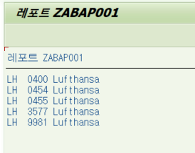 ๋ค์์ SFLIGHT ํ ์ด๋ธ์์ ํญ๊ณต์ฌ ID๊ฐ LH์ธ ํญ๊ณตํธ ๋ฐ์ดํฐ๋ฅผ FOR ALL ENTRIES๋ฅผ ์ฌ์ฉํ์ฌ ์กฐํํ๋ ์์ ์ ๋๋ค.
