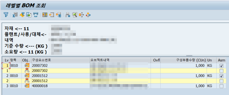 - CS03 νΈλμμ μ½λλ₯Ό ν΅ν΄ μμ±λ BOMμ μ‘°νν μ μμ΅λλ€. νΉμ μμ¬μ BOMμ΄ μ΄λ»κ² ꡬμ±λμ΄ μλμ§ νμΈν μ μμ΅λλ€.