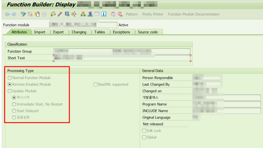 - SAP์์ ํจ์ ๋ชจ๋์ ๋ง๋ค ๋, Attributes ํญ์์ "Remote-Enabled Module" ์ต์ ์ ํ์ฑํํด์ผ ํฉ๋๋ค.