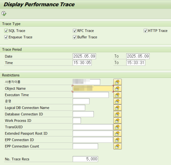 1) ST05 ํธ๋์ญ์ ์คํ