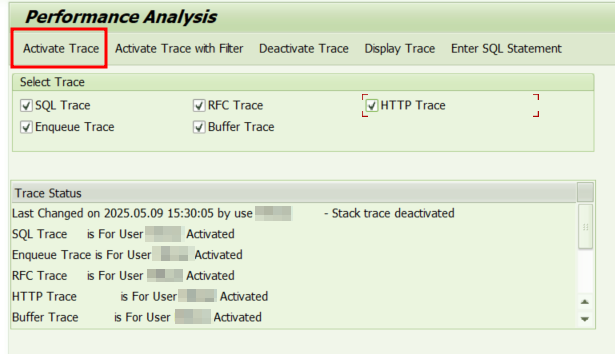 - `Activate Trace` ํด๋ฆญ