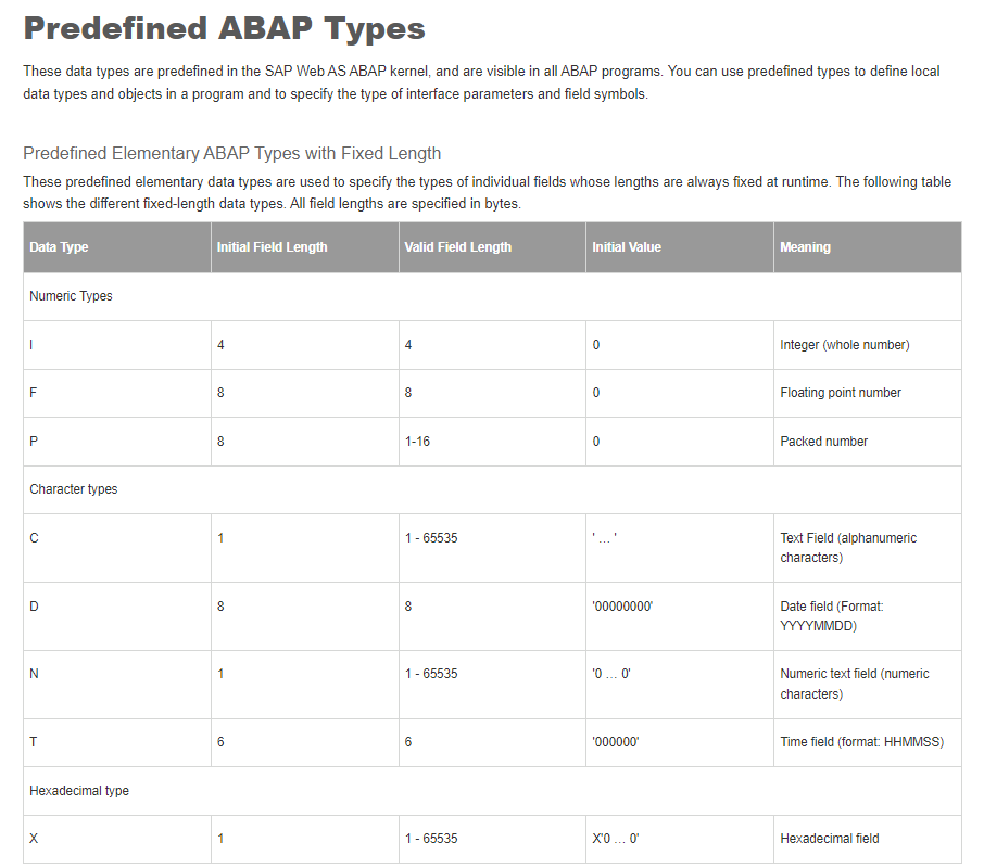 - ๋ชจ๋ ABAP ํ๋ก๊ทธ๋จ์์ ์ฌ์ฉํ ์ ์๋ Global Data Type์ด๋ค.