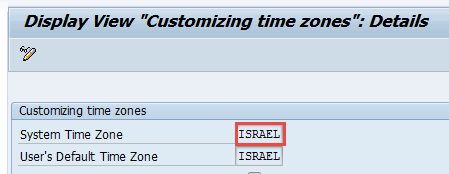 TCODE:SPRO์์ [General Settings] -> [Time Zones] -> [Maintain System Settings]๋ฅผ ์ ํํฉ๋๋ค.