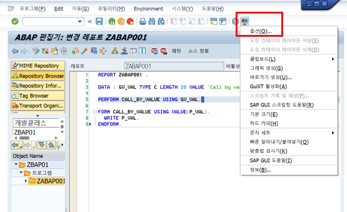 ๊ฐ๋จํ๊ฒ ํ ์คํธ ํ๊ธฐ ์ํด SAP ๊ฐ๋ฐ์ ํ ์ ์๋ T-CODE : SE80์ ์ ๋ ฅํ์ฌ ๊ฐ๋ฐ ํ๋ฉด์ ๋์์ค๋๋ค.